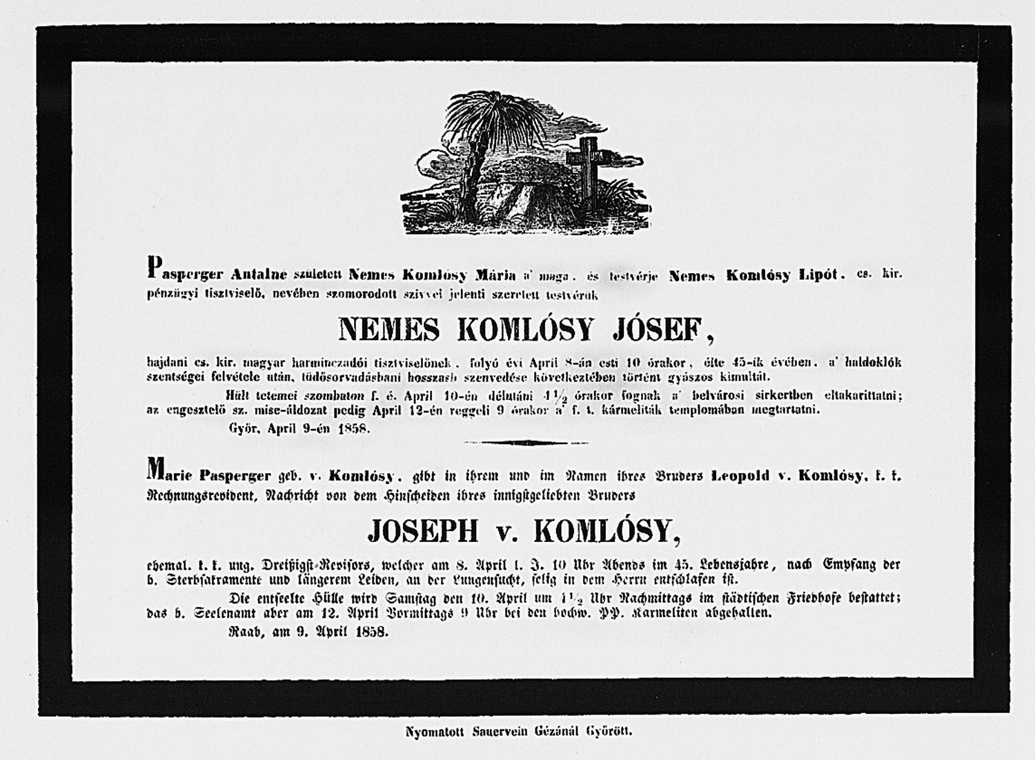 Nemes Komlósy József gyászjelentése1858-04-08Komlósy József Károly 1814 X041