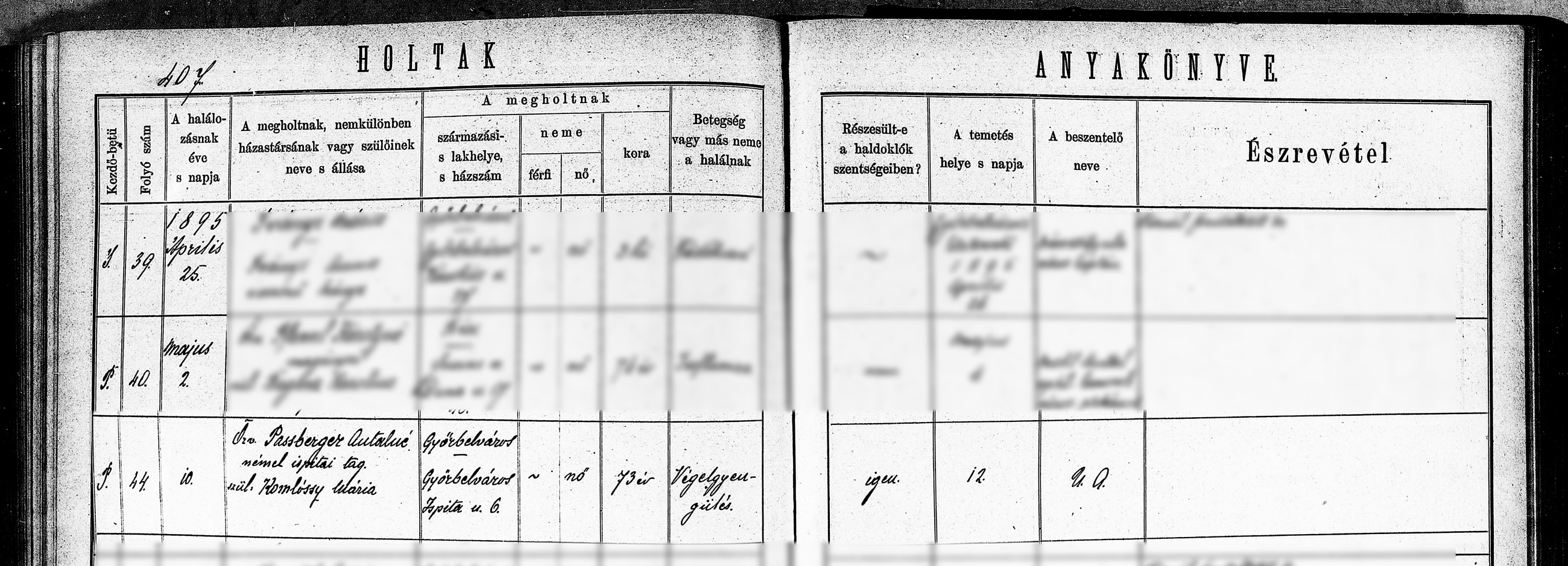 Komlóssy Mária özv. Pasperger Antalné halálozási anyakönyve1895-05-10Komlósy Mária ~1822 X043