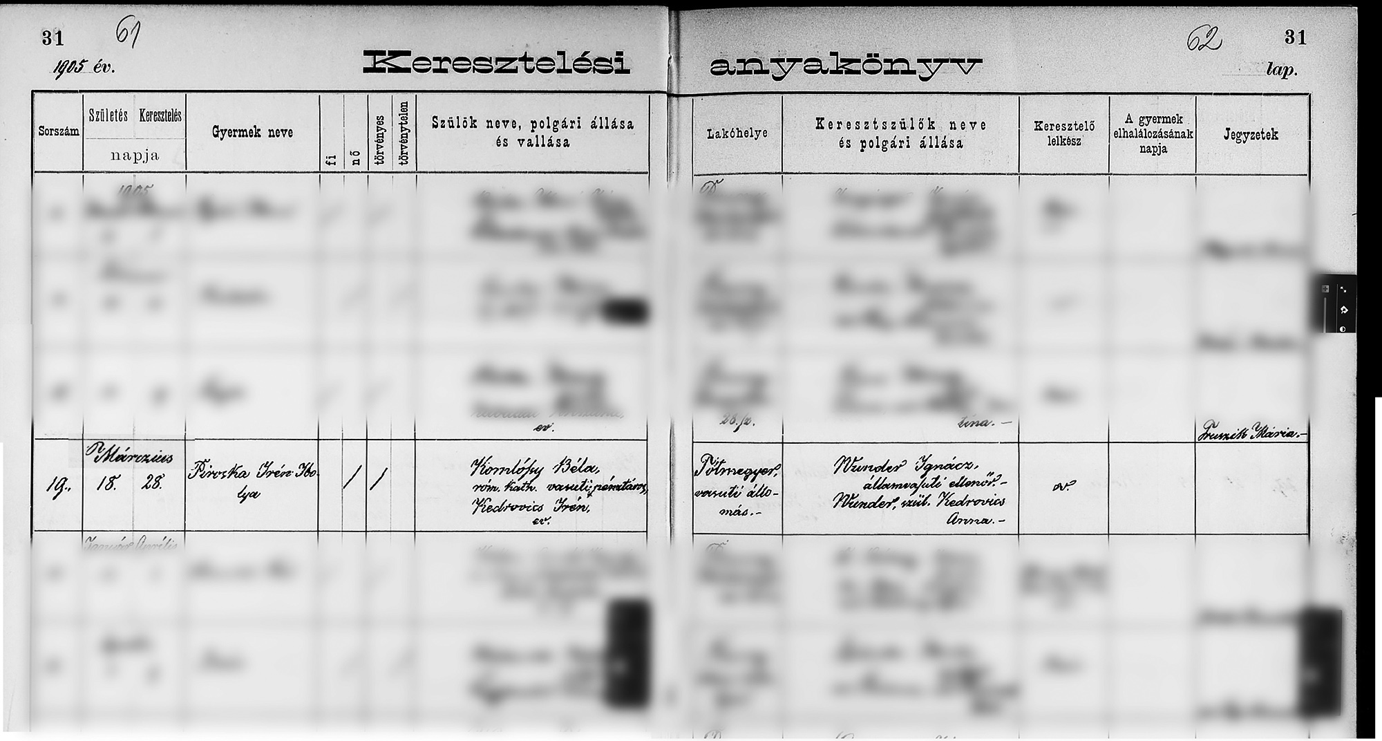 Komlóssy Piroska keresztelési anyakönyve1905-03-28Komlóssy Piroska 1905 X081