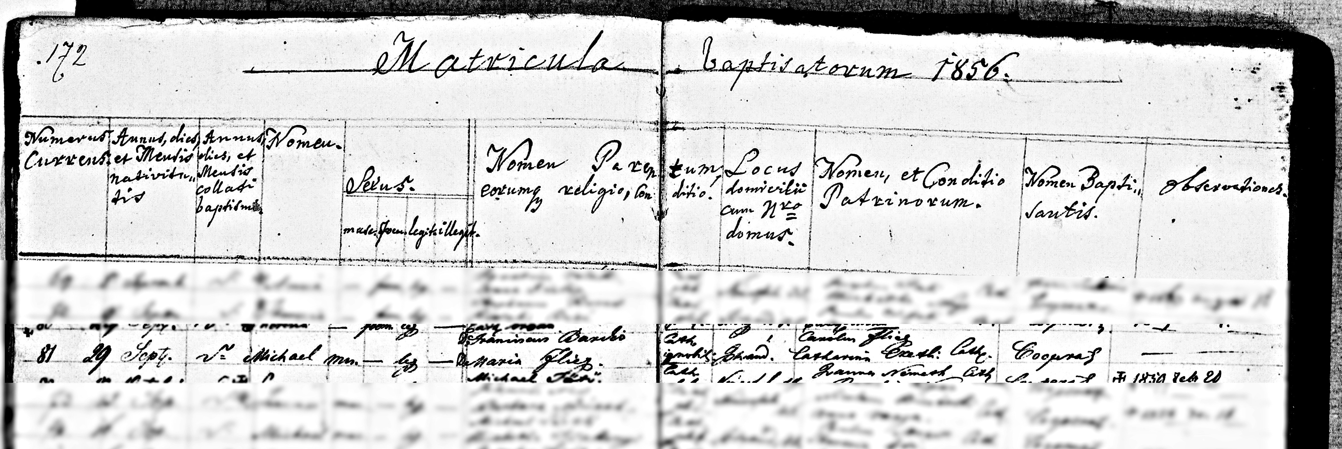 Bárdió Mihály születési anyakönyve1856-09-29Komlóssy Jolán 1866 X120