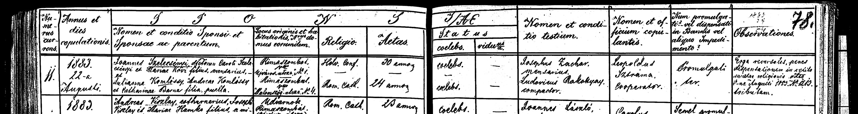 Julianna és Szelecsényi János házassági anyakönyvi bejegyzése1883-08-22Komlóssy Júlia 1850 X192