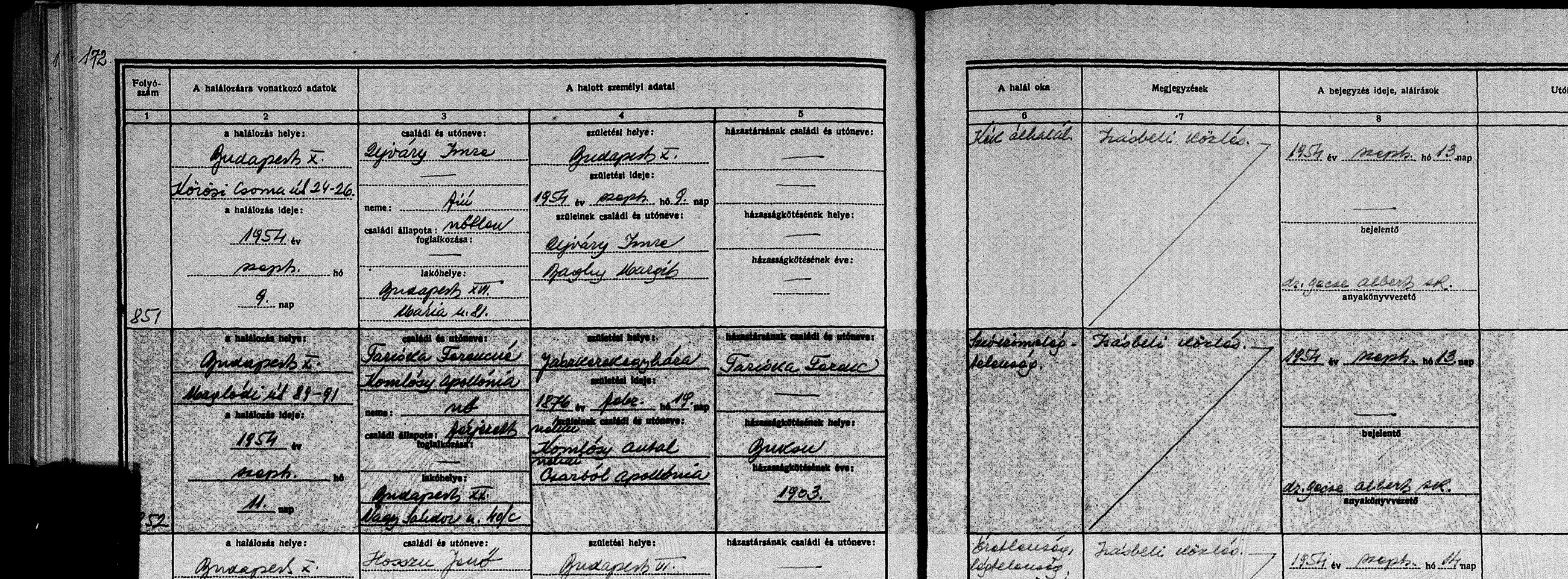 Komlóssy Apollónia Tariska Ferencné halálozási anyakönyvi bejegyzése1954-09-11Komlóssy Apollónia 1876 X349
