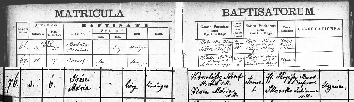 Komlóssy Irén Mária születési anyakönyve1885-12-06Komlóssy Irén Mária 1885 X291