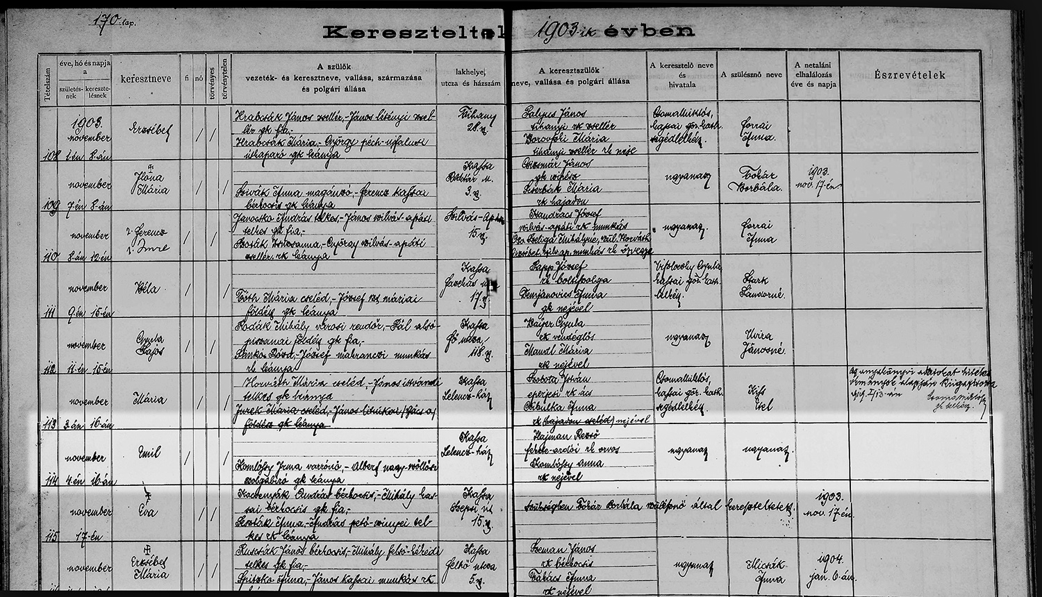 Komlóssy Emil keresztlevele1903-11-16Lipcsey Veronika ~1765
