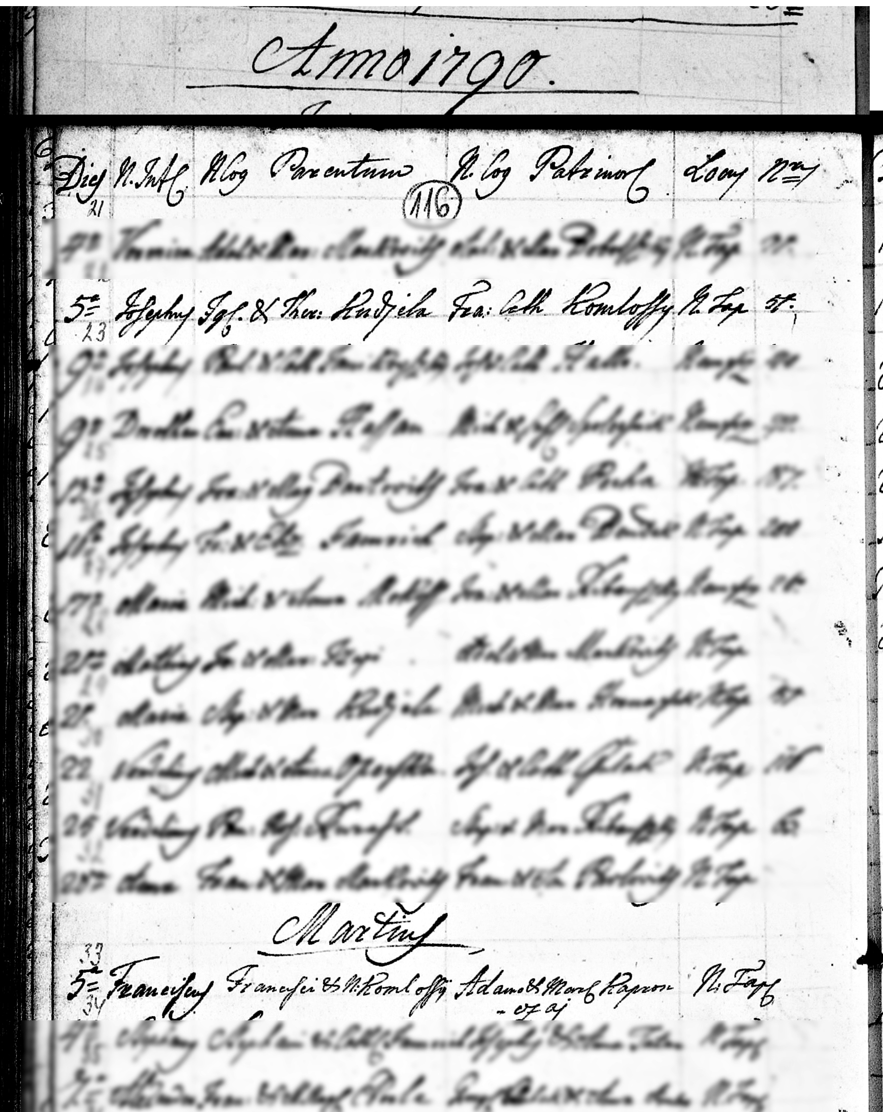 Komlóssy Ferenc keresztelési anyakönyvi bejegyzés1790-03-05Komlósy Ferenc 1790 K057