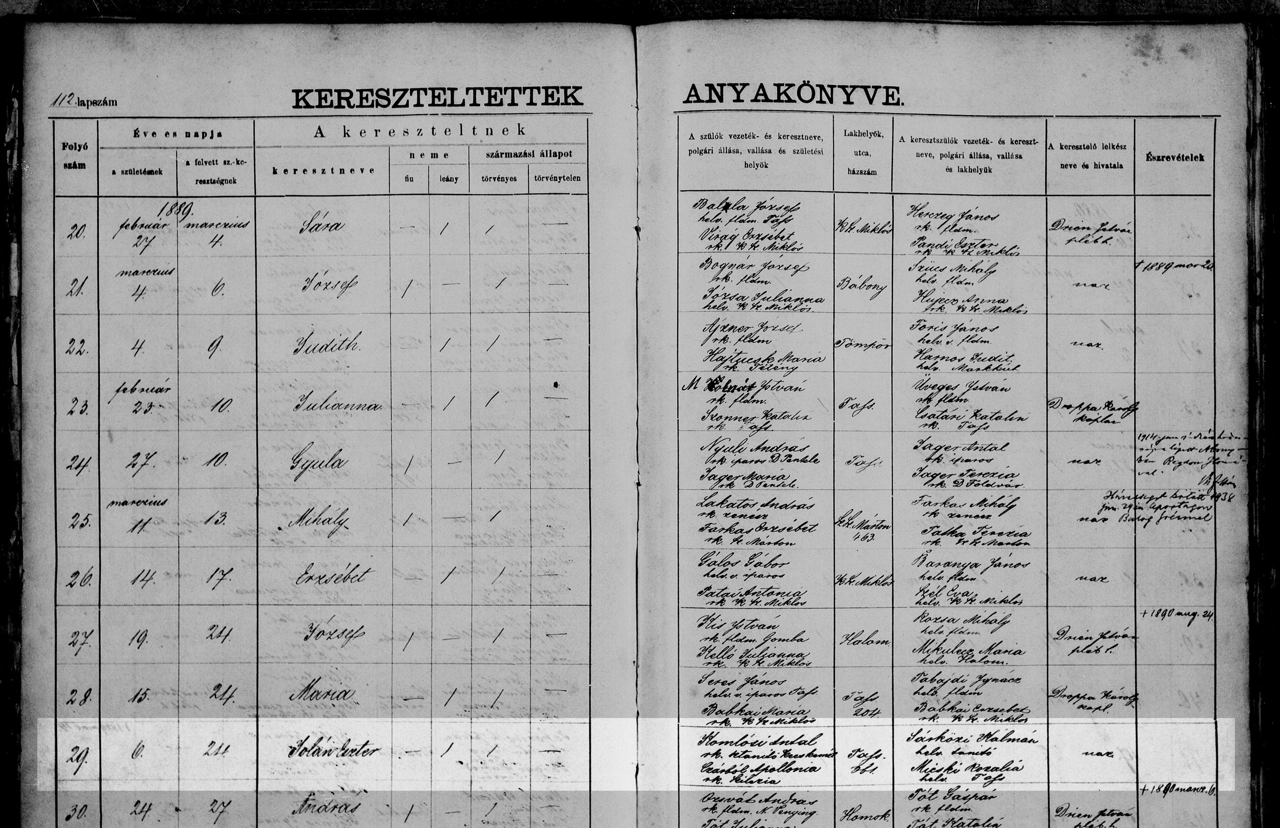 Komlóssy Jolán-Eszter keresztelési anyakönyve1889-03-24Komlóssy Jolán Eszter 1889 X350