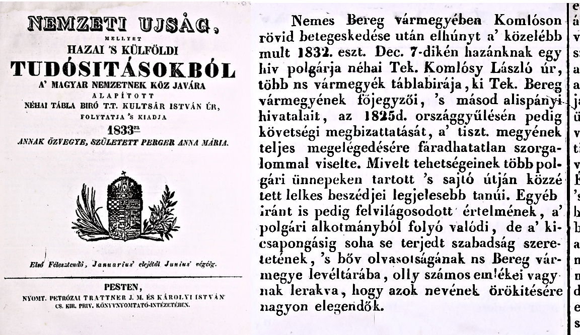 Komlósy László nekrológja a Nemzeti Ujság 1833. január 9-i számából1833-01-09Komlóssy László 1777 E002