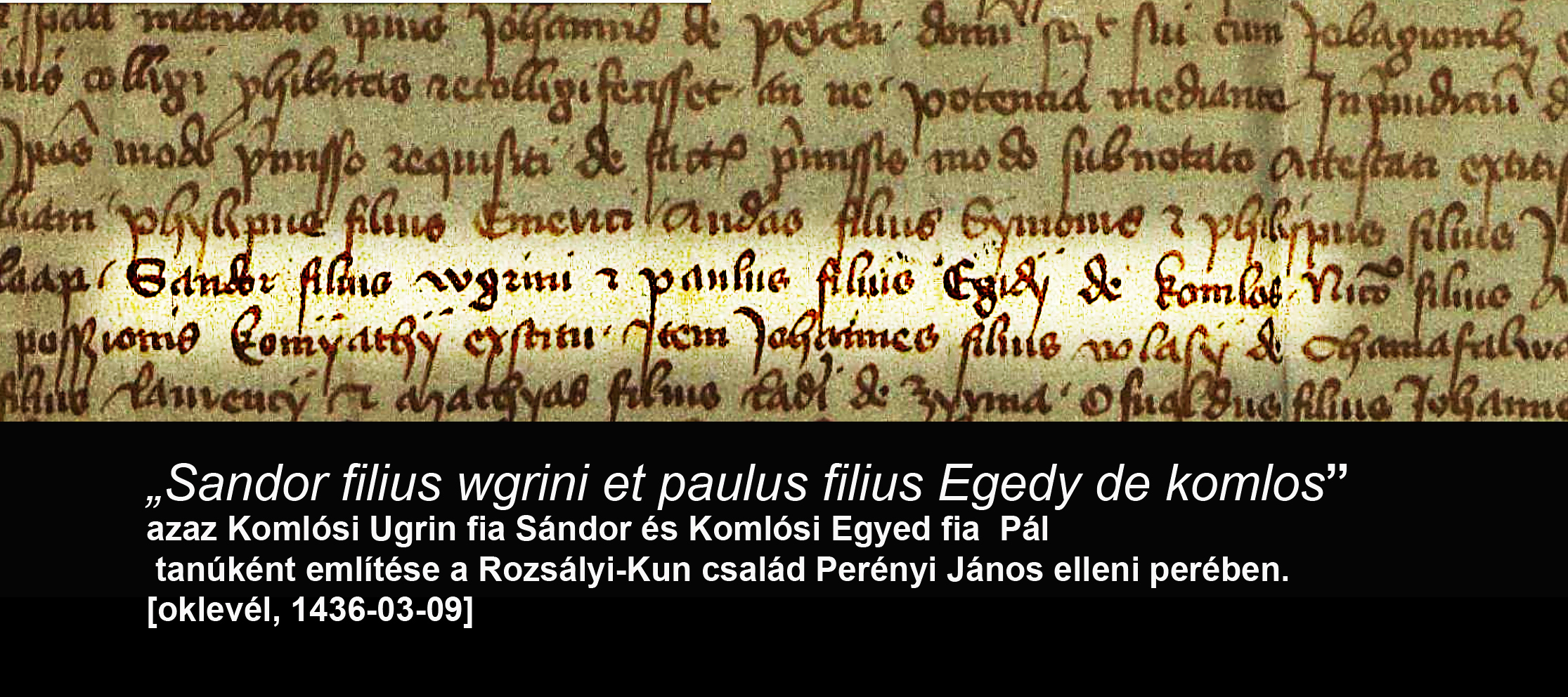 Ugrin fia Sándor és Egyed fia Pál említése1436-03-09Komlósy Pál ~1401 A013