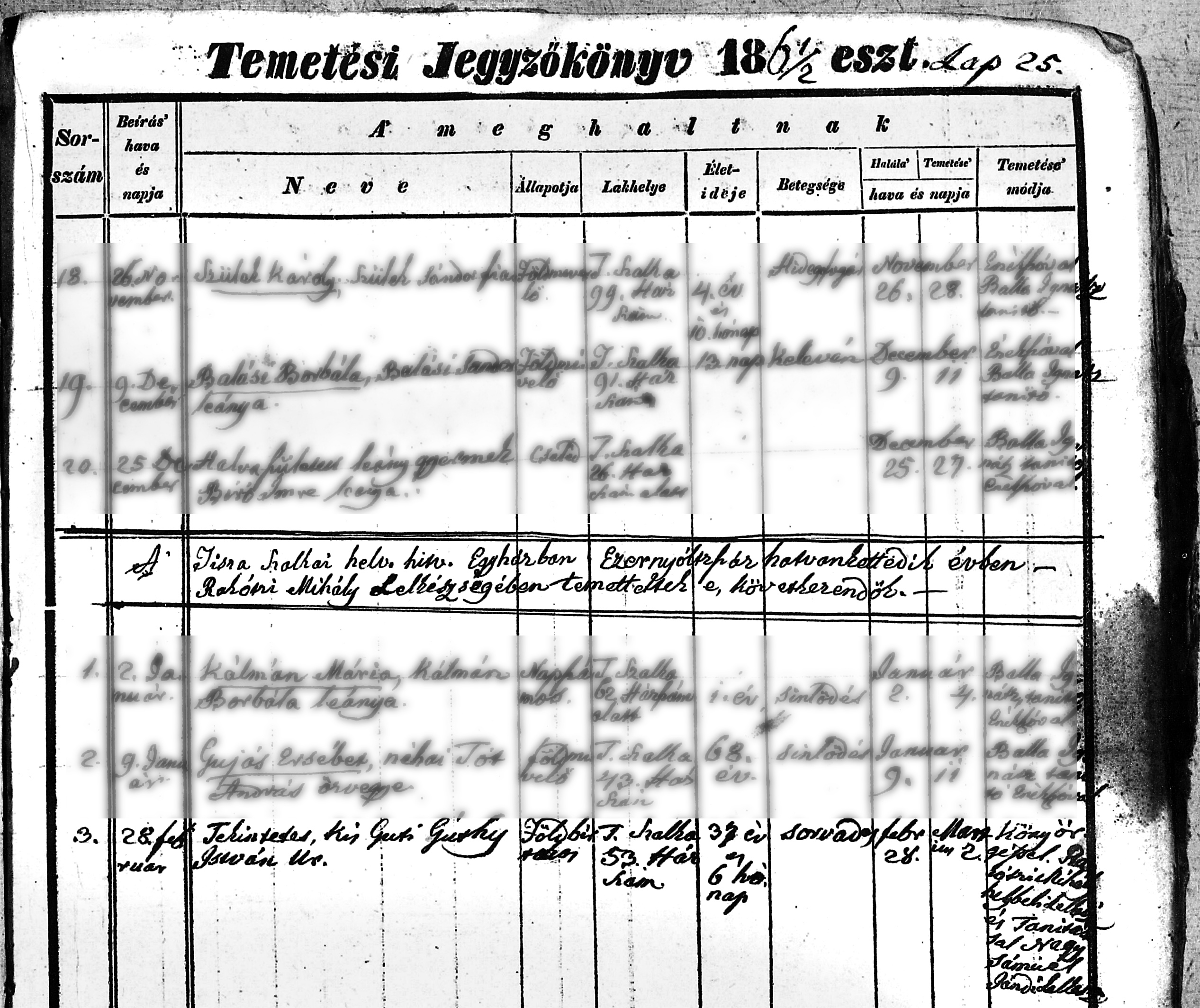 Guthy István temetési anyakönyvi bejegyzése (tiszaszalkai ref. egyház)1862-02-28Komlósy Ilona/Helén 1836 E013