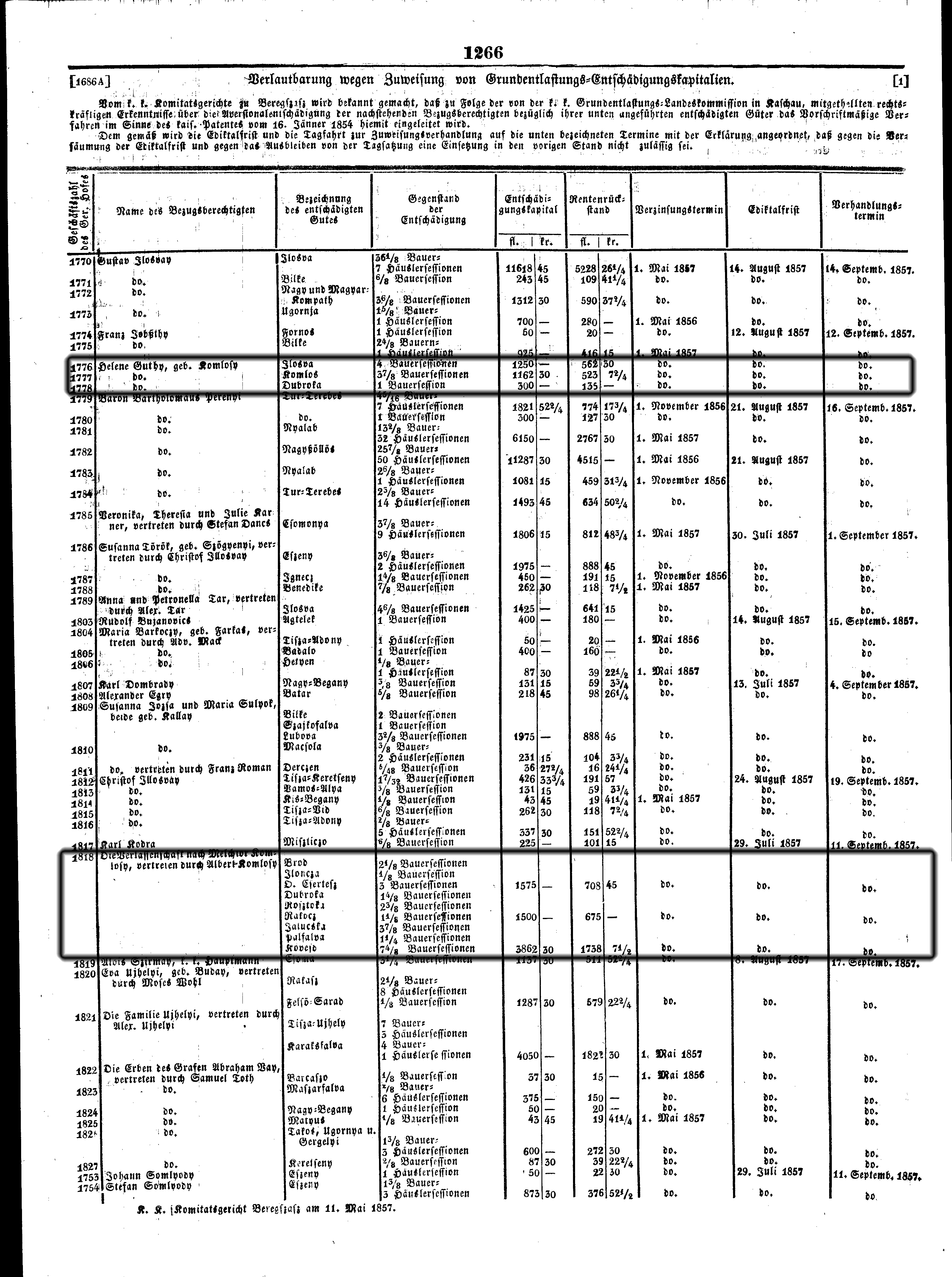 Kártérítés jobbágyfelszabadításért1857-05-20Komlósy Ilona/Helén 1836 E013