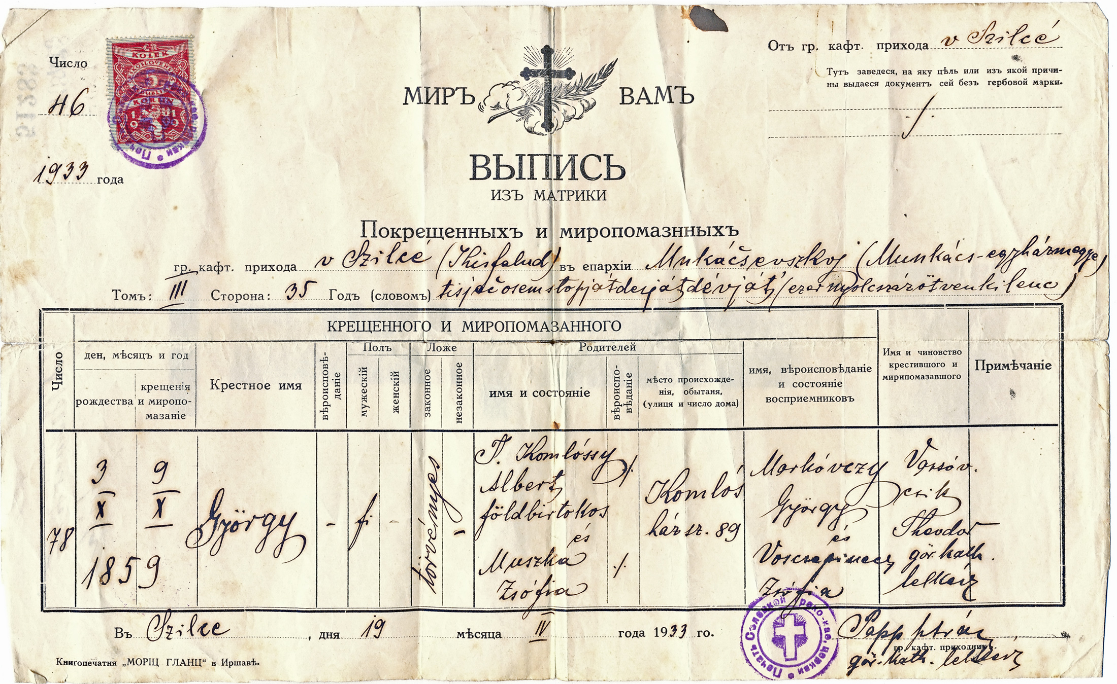 Komlóssy György keresztlevelének másolata (1933-04-19)1859-10-9Komlóssy György 1859 E014