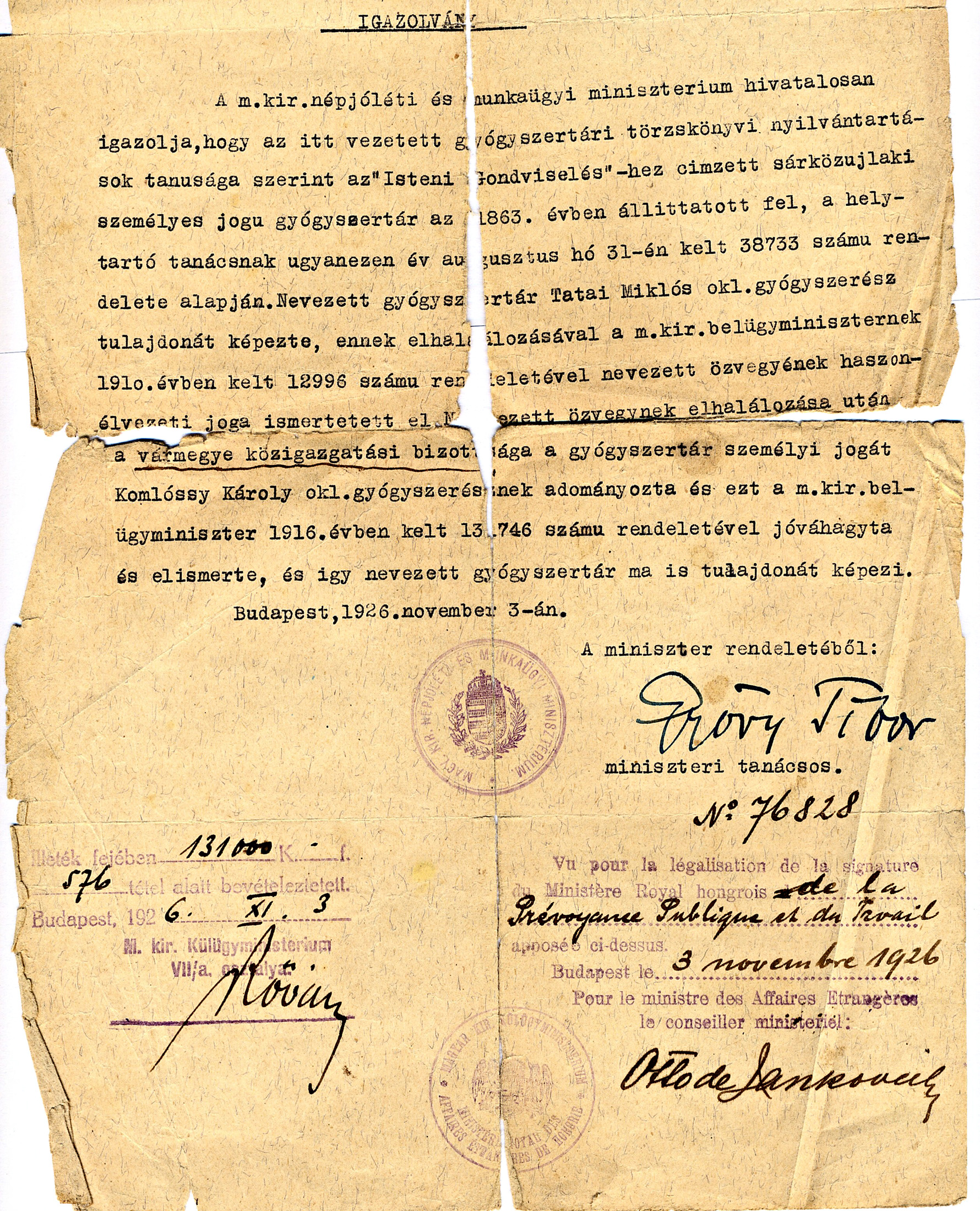 Komlósy Károly patikajoga1926-11-03Komlóssy Károly 1882 E016