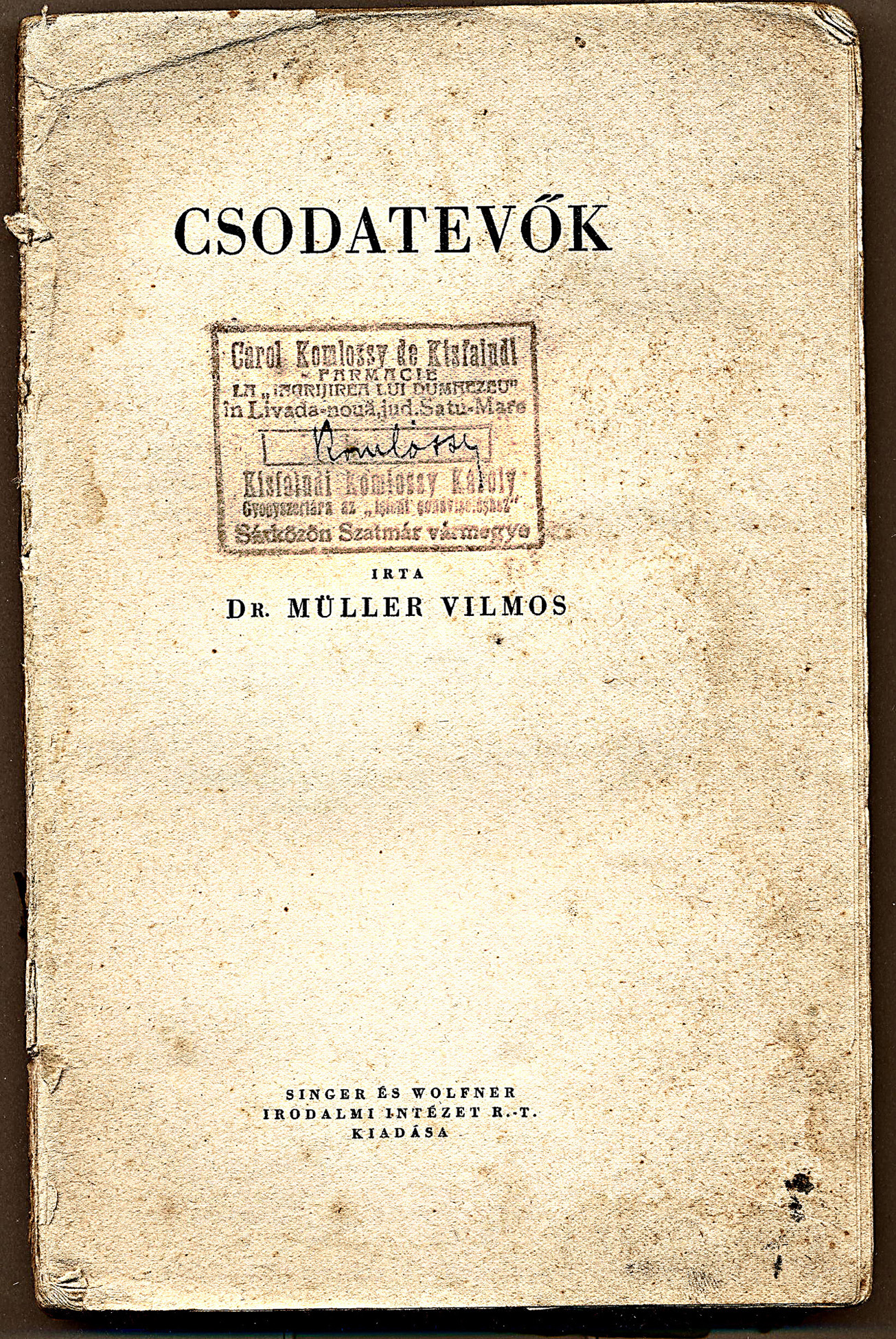 Károly patikapecsétje egy népszerű egészségügyi könyvönKomlóssy Károly 1882 E016