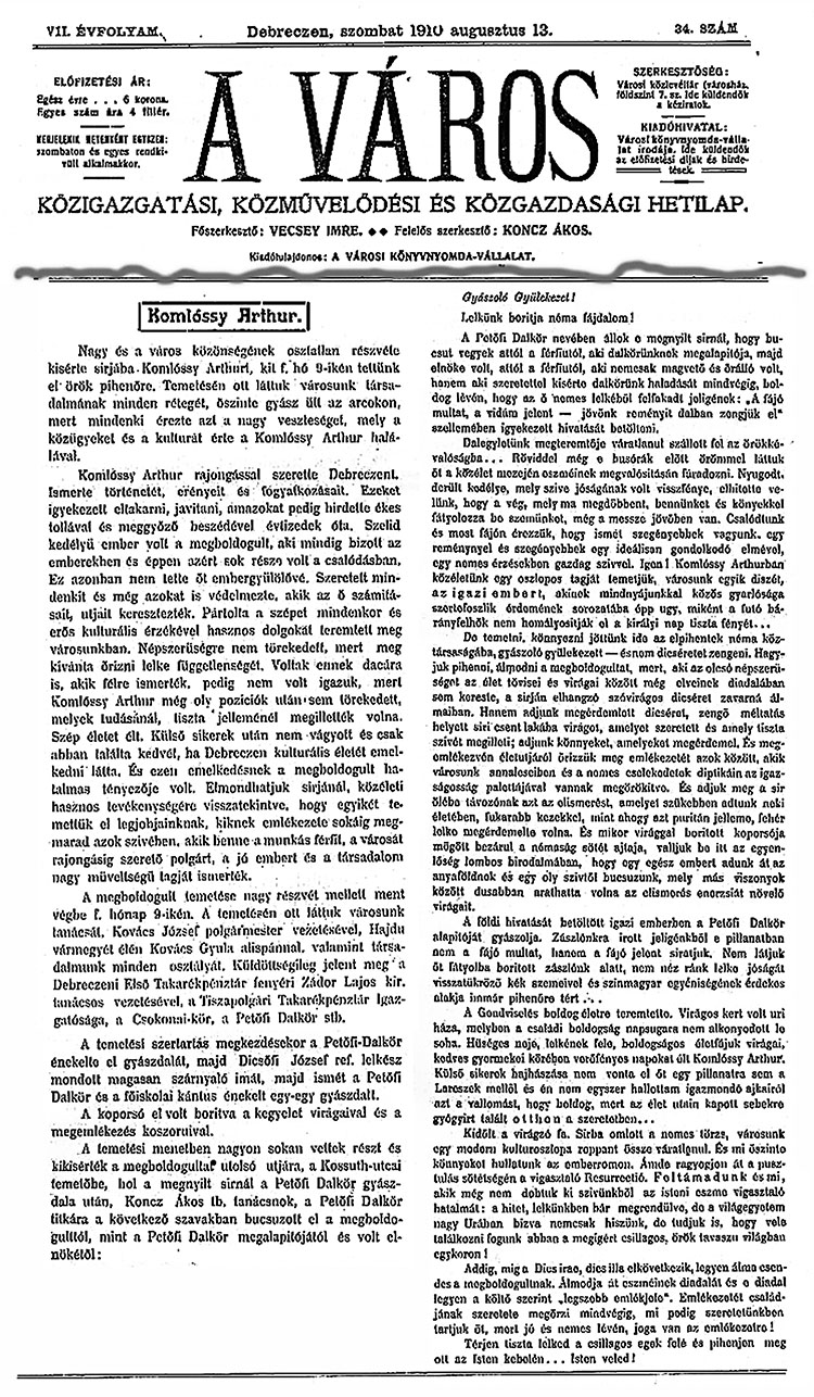 Komlóssy Artúr a Debreceni Képes Krónikában 19101910Komlóssy Artúr 1848 D017