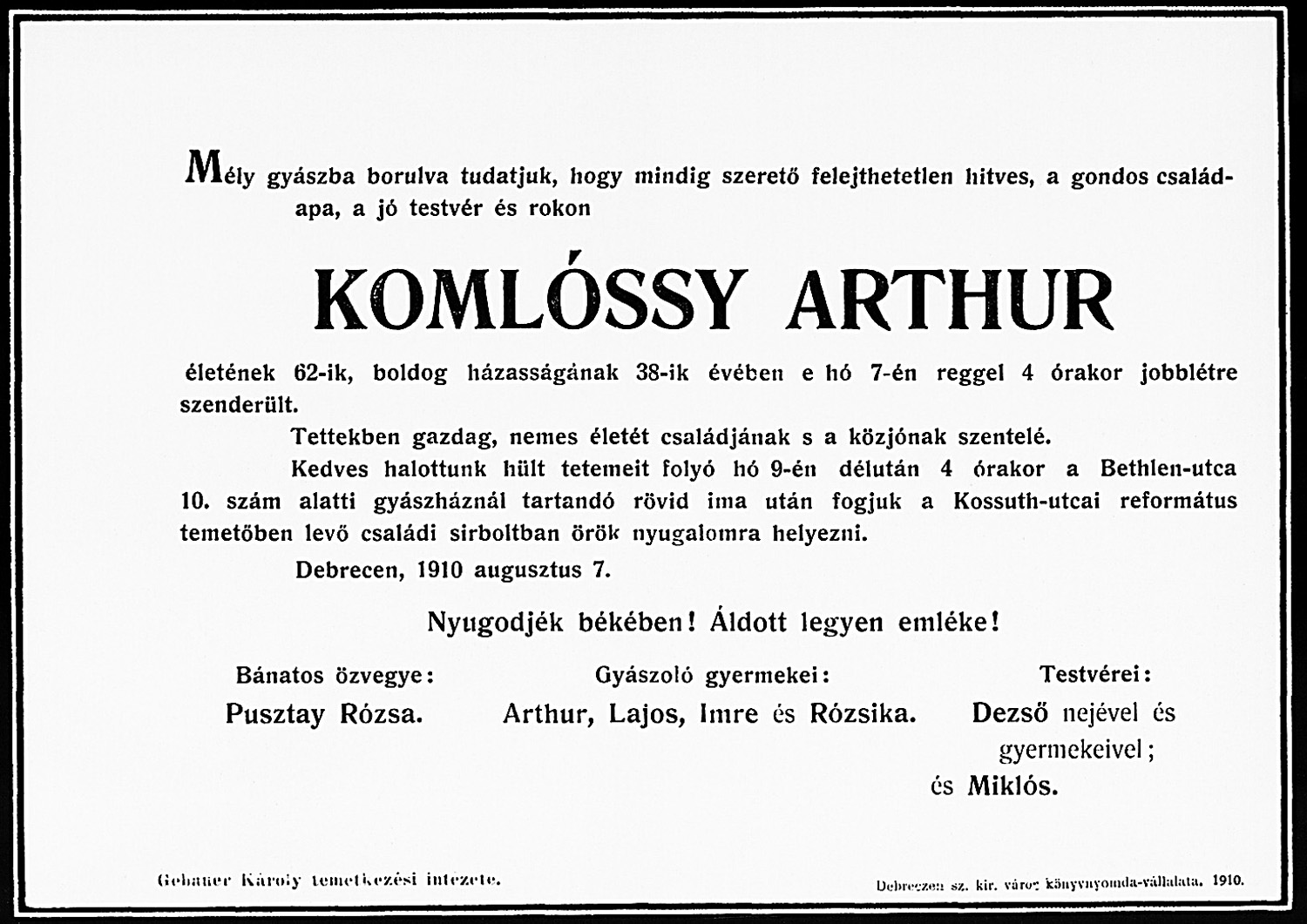 Komlóssy Artur nekrológja1910-08-13Komlóssy Artúr 1848 D017