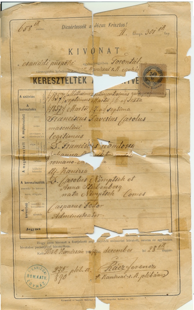 Komlóssy Ferenc Xavér keresztlevele1857-12-28Komlossy Ferenc Xavér 1857 G010