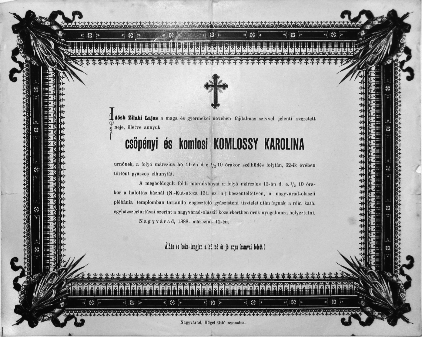 Gyászjelentés1889-03-11Komlóssy Karolina 1826 H009