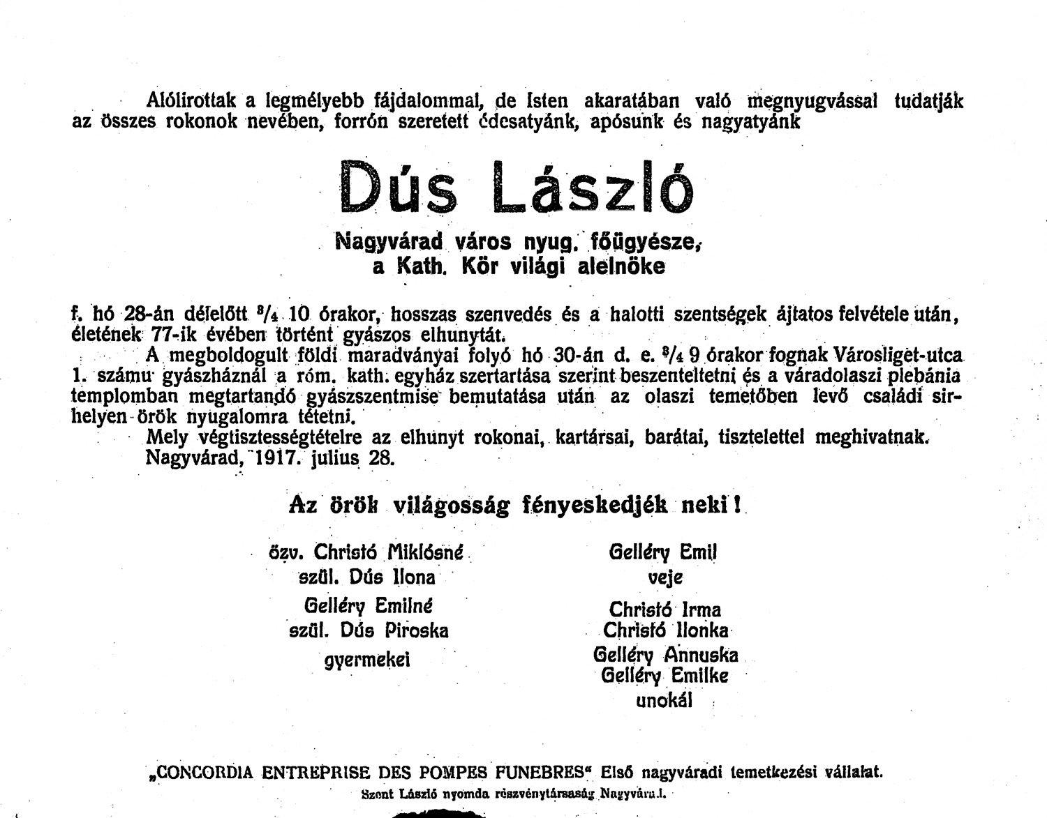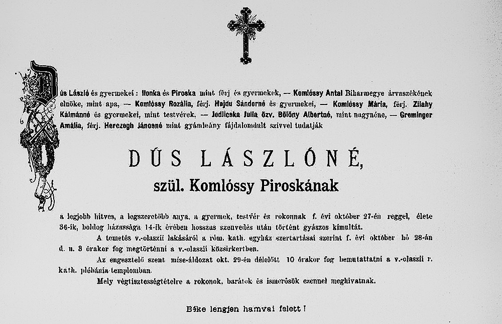 Dús László gyászjelentése1917-07-28Komlóssy Piroska 1851 H016