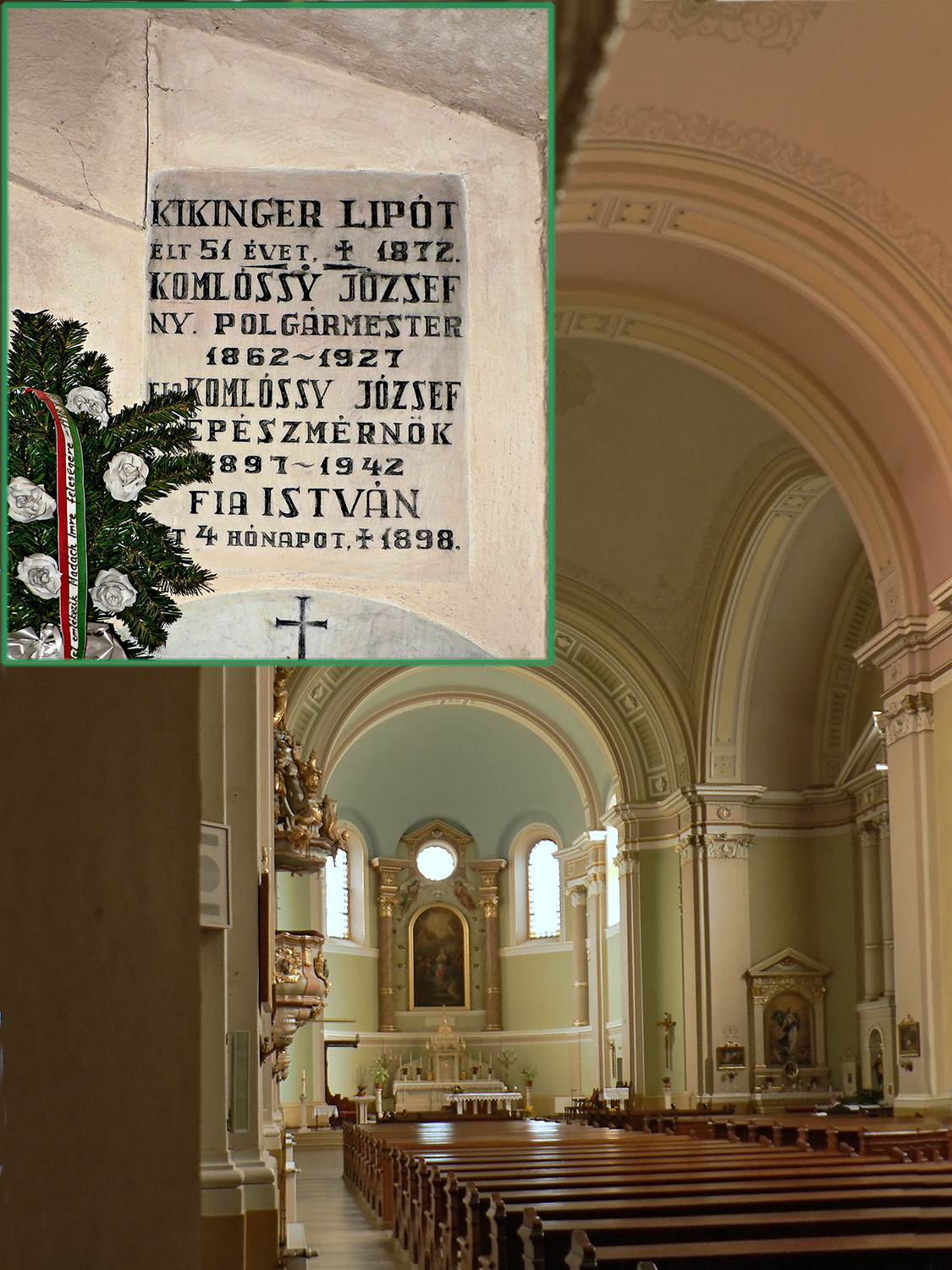 Komlóssy József polgármester sírja a nagyváradi Barátok templomának altemplomábanKomlóssy(Kikinger) József 1862 H019
