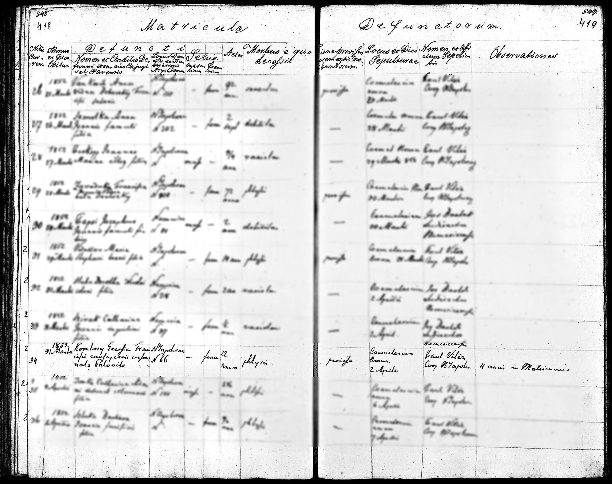 Komlóssy Ferenc első feleségének halotti anyakönyve1852-03-03Komlósy Ferenc 1825 K002