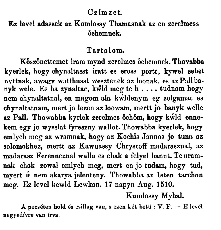 Komlóssy Mihály öccséhez Tamáshoz Magyar Levelestár 2. levél (a vizslás levél)1540-08-17Komlóssy Mihály ~1490 A085