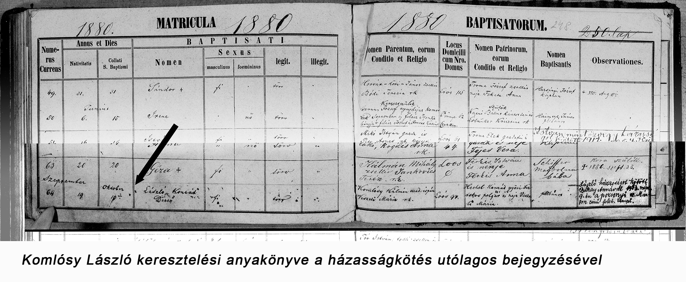 Komlósy László keresztelési anyakönyve1880-10-19Komlósy László 1880 M004