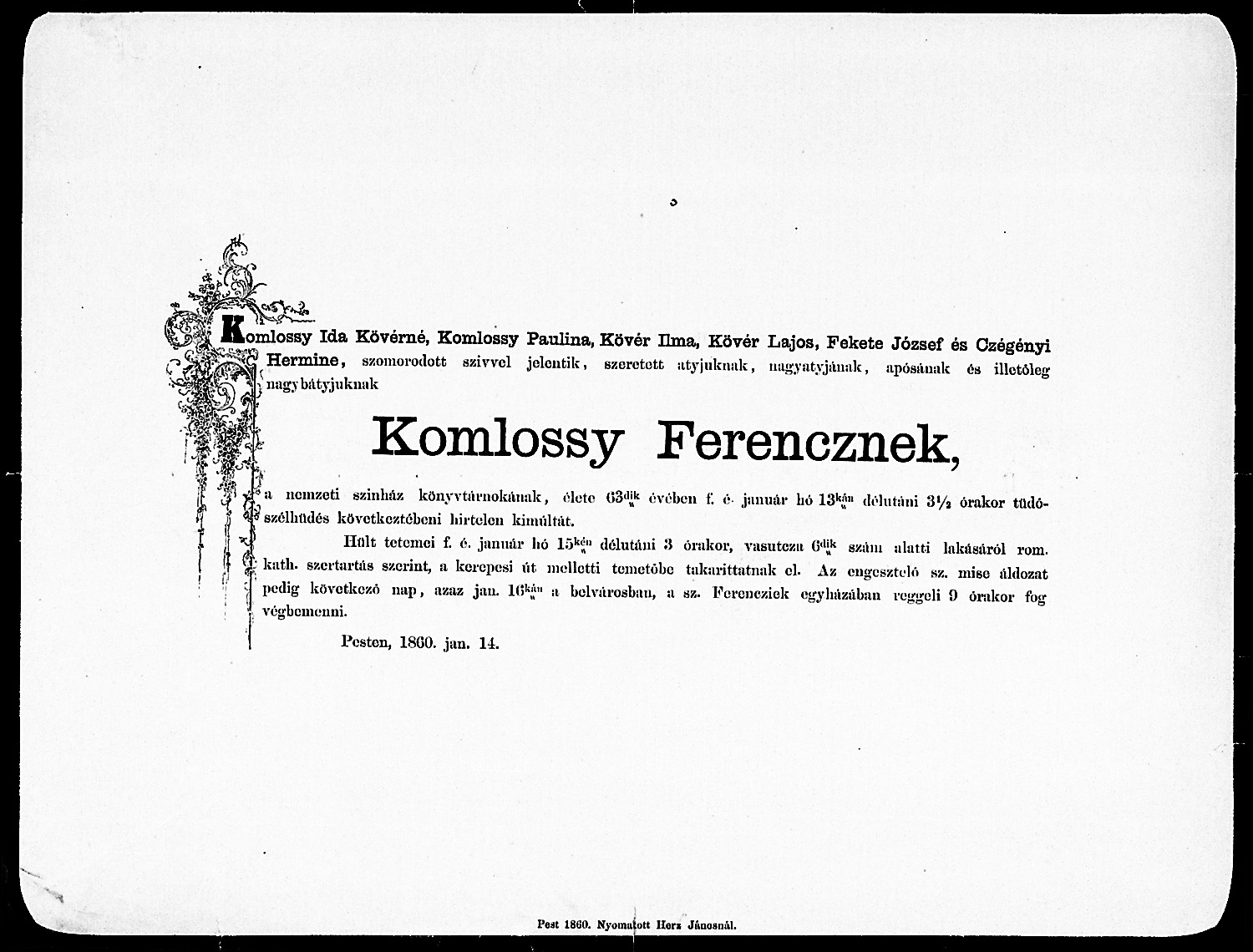 Komlóssy Ferenc Dániel gyászjelentése1860-01-14Komlóssy Ferenc Dániel 1797 X005