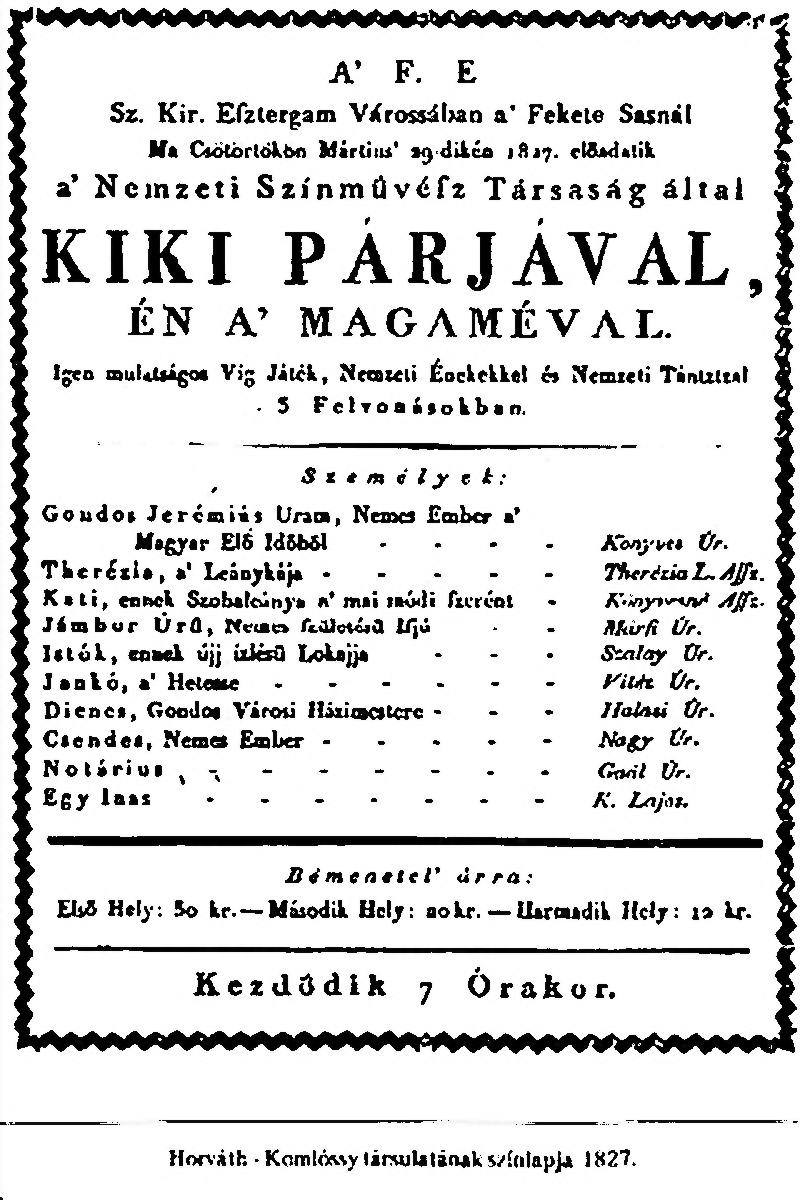 Színlap (Esztergom)1827-03-29Komlóssy Ferenc Dániel 1797 X005