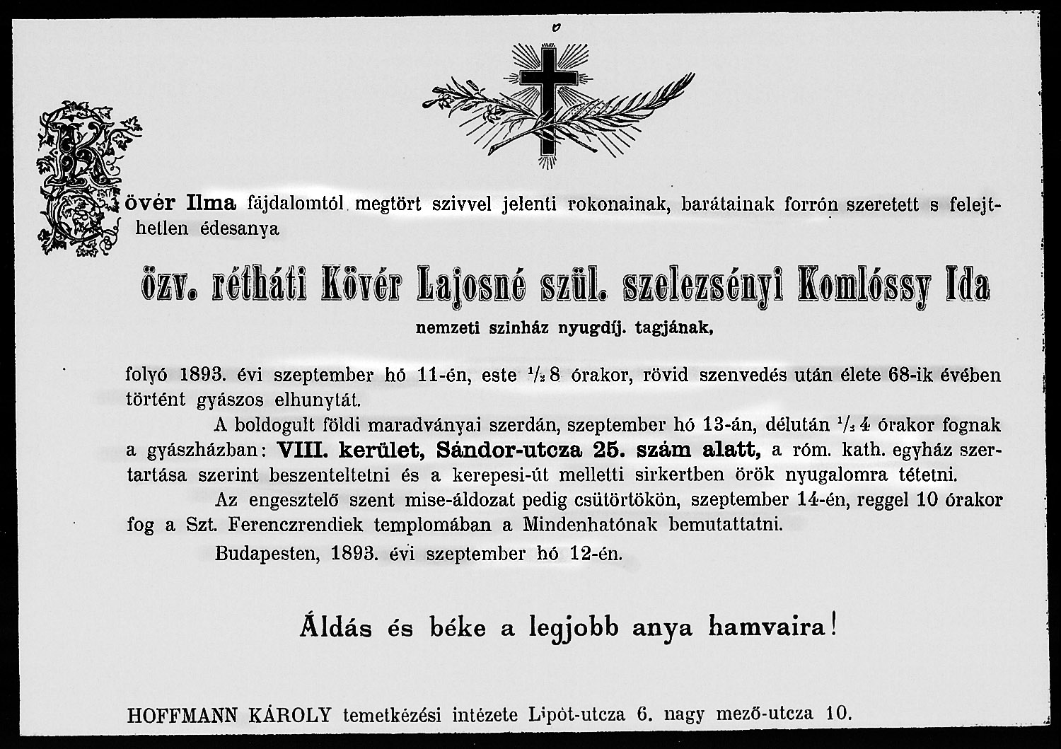 Kövérné Komlóssy Ida gyászjelentése1893-09-11Komlóssy Ida 1822 X006