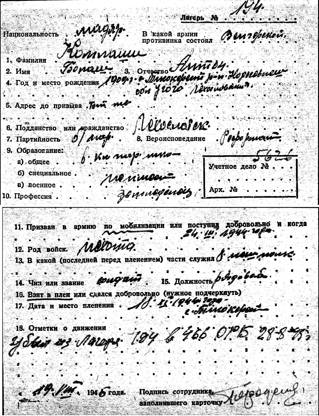Komlósy Balázs hadifogoly törzslapja1945-08-28Komlóssy Balázs 1909 I011