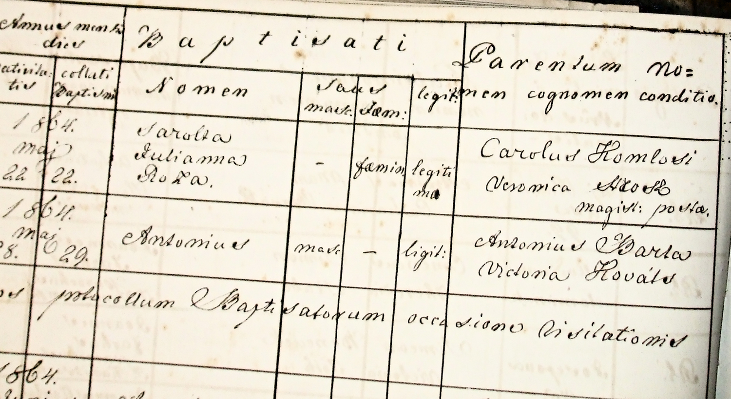 Születési anyakönyv1864-05-22Komlósy Sarolta 1864 G054