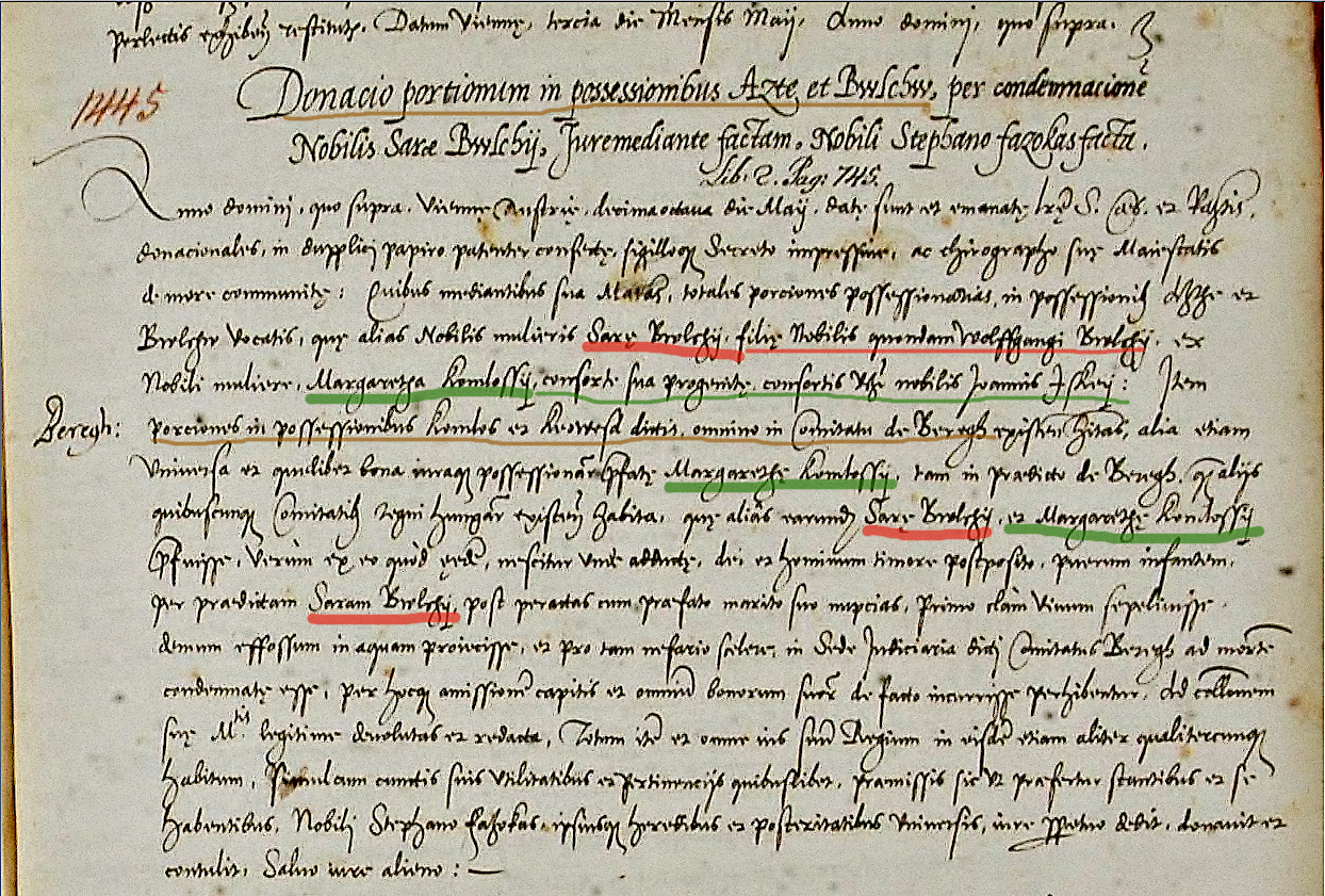 Komlóssy Margit és Bulchy Sára birtokadománya1573-05-18Komlósy Margit ~1505 A047