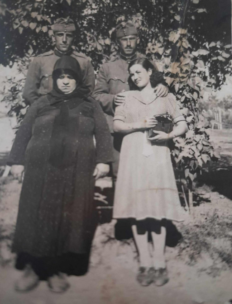 K. Antal (I010) felesége. Anyai ágon Komlóssy-leszármazott, hiszen édesanyja a borosjenői ágbeli Komlóssy Rozália(F027) volt. A képen idős korában Mándy Julianna mögötte Komlóssy Károly, aztán Komlóssy Balázs és felesége Tar Ilona